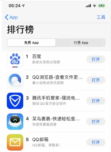 (图:腾讯手机管家位列苹果免费排行榜第三)