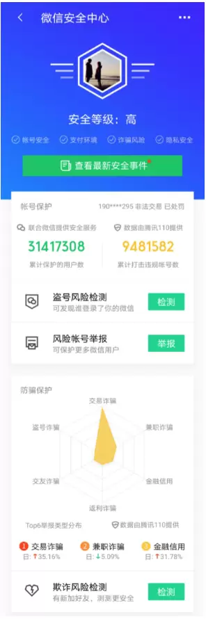(图:腾讯手机管家微信安全中心保护用户微信账号安全)