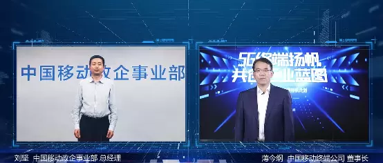 中国移动政企事业部刘坚总经理、中国移动终端公司薄今纲董事长共同宣布了5G行业终端扬帆计划正式启动。信通院王志勤副院长及中国移动相关专业公司领导也参与了本次启动会。