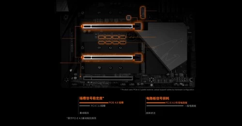 不仅仅是用料上的加强,技嘉Z490 AORUS MASTER采用了PCI-E 4.0的规格设计,用户在升级十一代酷睿处理器时无需更换主板即可获得PCIE4.0支持。相比于PCIe 3.0方案信号稳定性提高3.3倍,信号丢失率降低4倍,使得用户在Z490主板上获得最高速、最稳定的PCI-E体验。