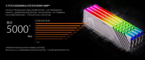另外, Z490 AORUS主板的内存可玩性得到了加强,技嘉Z490 AORUS MASTER主板采用了全新的菊联式串接+SMT技术设计,内存布线在PCB板内层下,防止内存线路受到外界因素干扰,影响内存发挥,超频能力大幅度提升。目前,技嘉Z490 AORUS MASTER主板通过XMP一键开启5000MHz内存频率,让小白用户也能轻松获得极致的性能体验。