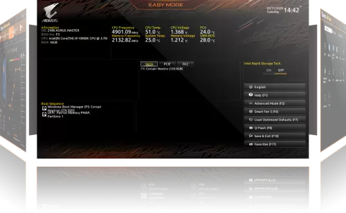 技嘉对Z490主板的BIOS进行了全新升级,采用新一代用户界面设置,将CPU频率、内存信息、储存设备、风扇状况等重要硬件信息,放置在单一界面,方便用户快速浏览,进入BIOS后一目了然,同时技嘉在BIOS内设置了收藏夹,可供用户收藏常用选项,进行快速设置,便于超频时的各类参数调试,让BIOS操作更为人性化。