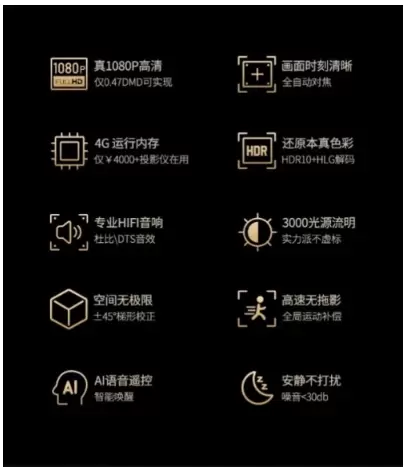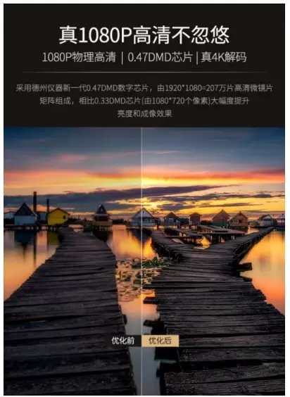分辨率决定了图像画质的细腻感与清晰度,高分辨率可使视频图像分析实现质的飞跃,而与分辨率关系最紧密的是显示芯片。腾讯极光投影T5配置的0.47DMD的显示芯片上,密布着高达207万个微镜,能轻松输出1920 x 1080的真1080P分辨率,而0.47DMD芯片也是检验投影是否为真4K的标准。