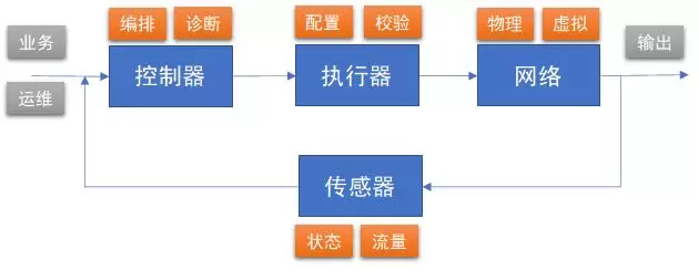 3)运维诊断自动化:由控制器中的诊断单元通过分析传感器的监控数据,自动定位网络故障,再调用配置管理自动化实现。