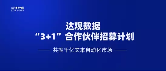 面对智能自动化发展浪潮,达观数据打造了“3+1”完善的渠道服务支持机制,诚邀行业合作伙伴共崛千亿文本自动化市场。
