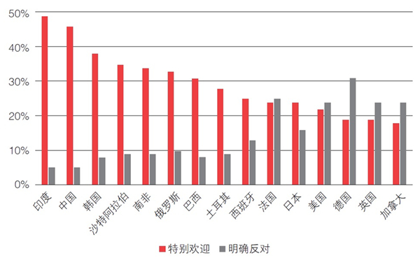 部分国家民众对自动驾驶汽车的态度(省略态度中立人数占比)。资料来源:Ipsos