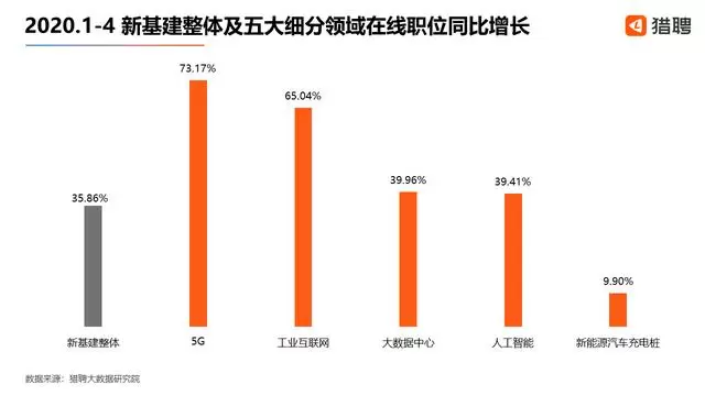 5G领域在线职位增长位居第一,远高于新基建整体平均增幅
