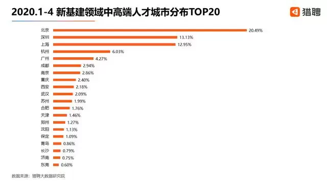 北京深圳上海包揽前三,新基建中高端人才占比均超12%