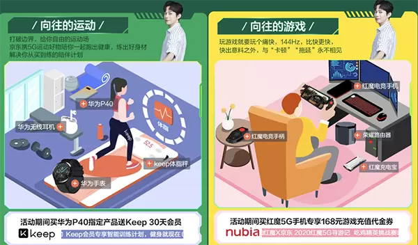超级下饭综艺《向往的生活》正在热播,作为京东5G首席体验官的何老师也为我们设计了5G向往的场景,并精挑细选每个场景必备产品。如“向往的运动”场景中,买华为P40指定产品送Keep 30天会员;“向往的娱乐”场景中,买荣耀30 5G手机送爱奇艺1个月黄金会员,让你追剧告别广告;“向往的游戏”场景中,买红魔5G游戏手机专享168元游戏充值代金券;“向往的学习“场景中,买小米10指定产品送京东读书30天会员;“向往的工作“场景中,购买OPPO指定产品,送10套秋叶PPT精品模板,升职加薪就看PPT做的好不好了!