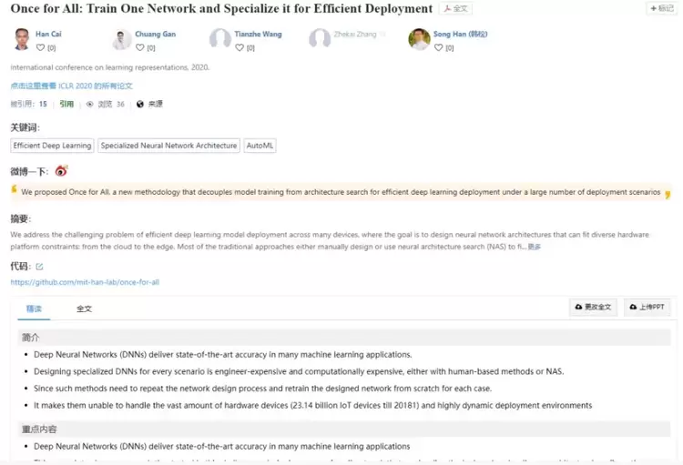 Once-for-All: Train One Network and Specialize it for Efficient Deployment论文详情(来源:AMiner 会议智图开放平台 ICLR 2020 专题全析图)