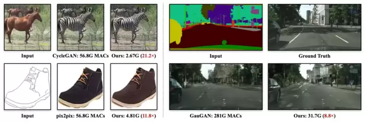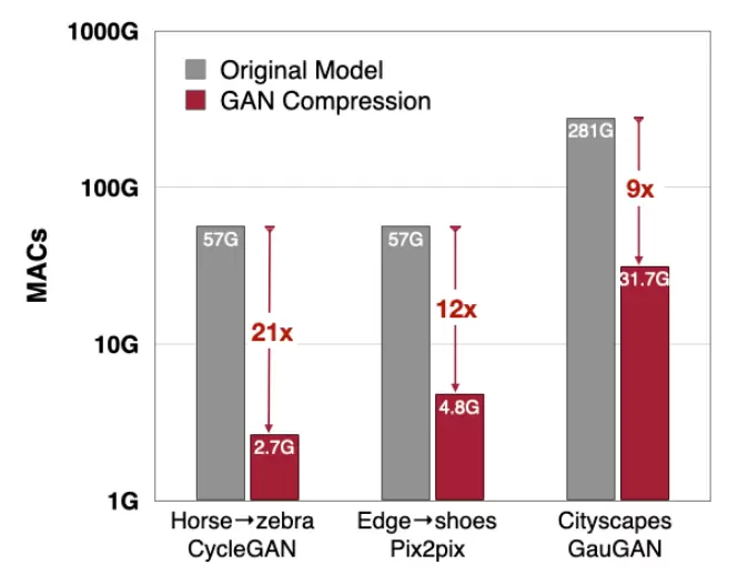 借鉴这篇论文的方法,韩松和朱俊彦团队将在 CVPR’20 发表了题为GAN Compression: Efficient Architectures for Interactive Conditional GANs的新成果。这是一篇关于如何压缩条件生成对抗网络(cGAN)算力消耗量过大的论文,提出了一种通用的压缩框架,以减少 cGAN 在运算过程中的推理时间和模型大小。