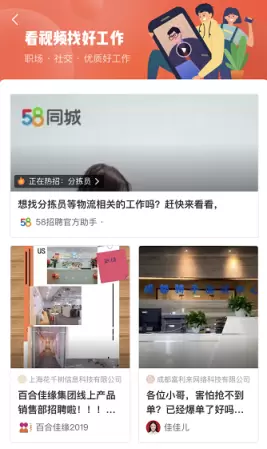 58同城推出“短视频招聘专区” 动态展示企业形象吸引优秀人才应聘