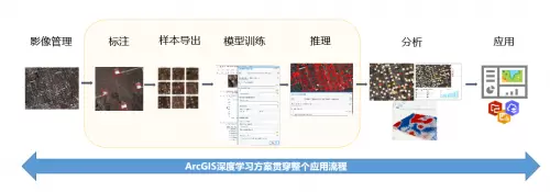 ArcGIS在前期的数据管理和预处理,如基于镶嵌数据集的大规模影像数据的管理和样本数据采集、编辑和预处理,以及深度学习结果出来之后的后处理和分析方面,拥有天然的优势。