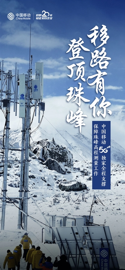 2020年,是人类首次从北坡成功登顶珠峰60周年、中国首次精确测定并公布珠峰高程45周年,同时也是中国移动成立20周年。随着本次珠峰高程测量的顺利进行,中国移动依托覆盖珠峰峰顶的5G网络,独家全程圆满完成了珠峰高程测量通信保障工作,让世界见证了中国5G新高度。未来,中国移动将不断加快5G布局,构建“覆盖全国、技术先进、品质优良”的5G精品网络,推动数字经济的转型与发展。