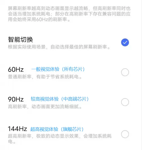 从用户的角度来看,只有144Hz刷新率才能得到最流畅的画面,得到丝滑般的视觉和操控体验,不管是现在的顶级水平还是未来的主流水平,这都需要旗舰芯片的支撑。第二段位是120Hz和90Hz,画面流畅感次之,中高端芯片可支持。