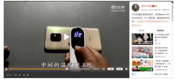Redmi10X背面机身温度32.8度,真正是畅快玩不烫手