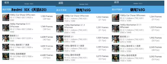 Redmi 10X GFX跑分全面领先骁龙765G终端