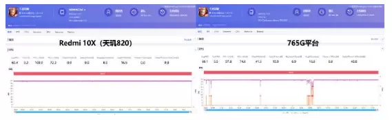 可以看出,Redmi 10X采用天玑820芯片确保了主流游戏满帧稳定运行,仅在这一项上就使得其相对骁龙765G的手机加分不少。