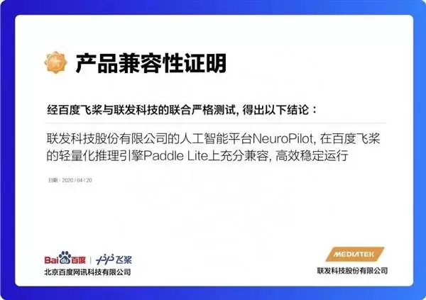 近日,联发科联手百度飞浆(PaddlePaddle)深度学习平台,共同完成了Paddle Lite轻量化推理引擎与联发科NeuroPilot人工智能通用软件平台适配。这意味着联发科的AI处理器APU可以完成Paddle Lite引擎的快速部署,有效提升开发效率。