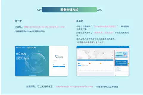 为提升客户售前体验、降低服务门槛,CMI将继续支持“先试后买”计划。企业客户可通过mCloud平台在线申请丰富云网服务免费试用,包括云连接、SD-WAN、应用加速、视频会议、远程办公解决方案及价值500美元的云服务代金券,轻松体验云网服务。