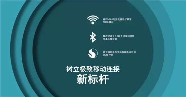 除了全线支持Wi-Fi 6E、三频段的第二代Networking Pro系列无线平台,高通今天还发布了全球领先的移动无线连接产品组合,Wi-Fi 6E 6GHz频段、蓝牙5.2紧密地结合在一起,速度也是全球第一。