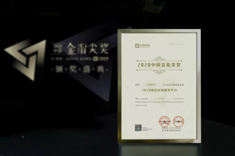 5月29日,深圳市小满科技有限公司受邀参加了由艾媒咨询主办的“2020全球未来科技大会”春季线上峰会,并荣获大会颁发的“2020中国金指尖——最佳企业服务平台”大奖。