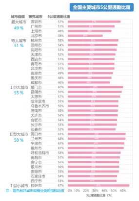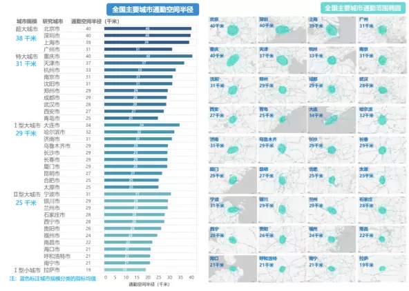 通勤半径和城市规模成正相关,北京深圳重庆为目前城市最大通勤尺度
