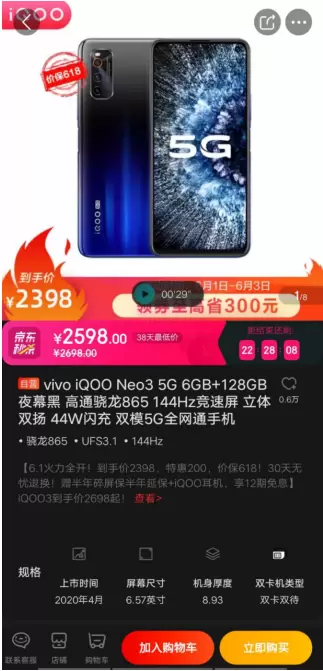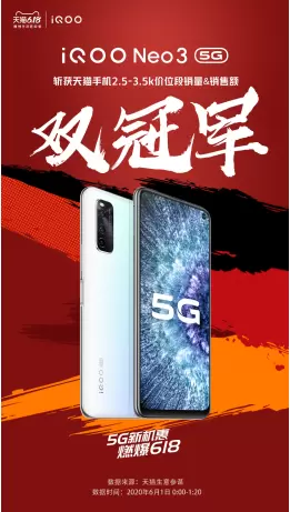 618首战告捷:iQOO Neo3荣获2.5K档销量冠军
