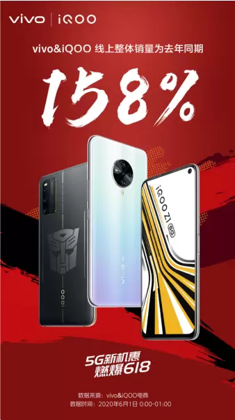 今日凌晨,一年一度的618网购狂欢节正式开启。根据iQOO官方传来的数据,在6月1日凌晨618活动正式开始后,后台订单就以几何级数快速增长,全面刷新上年同期销售业绩。在今年的618开门红中,仅用了1小时就达到了去年同期销量的158%。