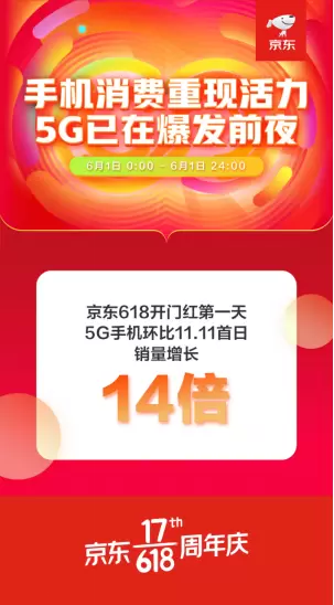 5G手机消费火爆 京东618首日5G手机环比11.11首日销量增长14倍