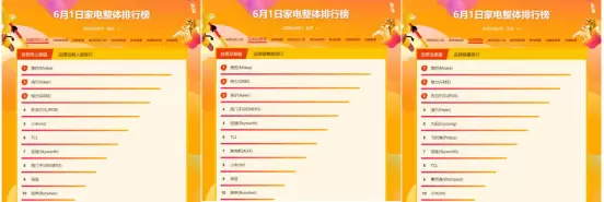 截至6月2日,家电整体榜单上可以看到美的在全渠道拔得头筹。无论是在品牌加购人数、品牌销售额还是品牌销量办单上,美的都占据榜首。虽然美的在三个榜单都摘得桂冠,但在单品销售额自营全渠道榜单中,格力却和美的“打了个平手”,榜单前十名里双方各占一半。王者到底是谁,这还真不好说。