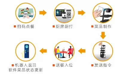 餐饮行业讲求出餐的高效率,而机器人系统与天财商龙的管理系统完成对接后,餐厅工作人员只需要一键扫码,无需手动翻页点击餐桌号和菜品,搭配机器人3层大容量托盘,一次出餐可达12盘,送餐流程更短、配送更快。