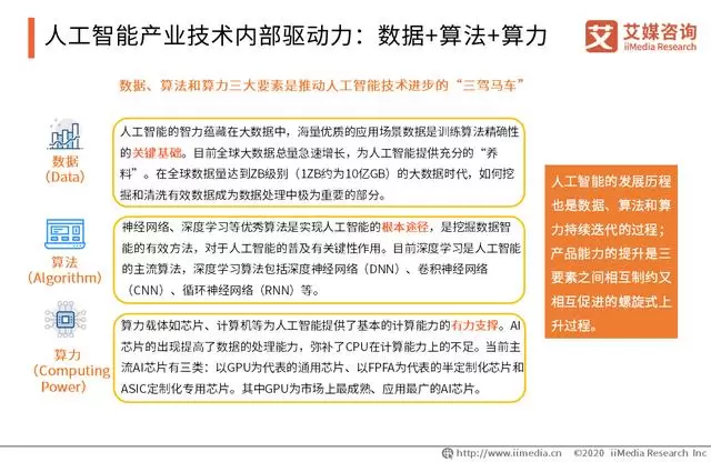 人工智能产业技术内部驱动力:数据+算法+算力