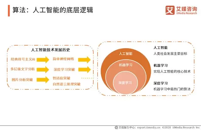 算法作为人工智能技术的引擎,主要用于计算、数据分析和自动推理。作为人工智能的底层逻辑,算法是产生人工智能的直接工具。纵观人工智能的发展历程,本质上也是以算法为核心推动力的人工智能技术和研究的发展史。算力和数据的大幅提升助推人工智能算法的机器学习领域,特别是其中神经网络主导的深度学习领域得到了极大地突破。基于深度神经网络技术的发展,人工智能算法步入快车道。