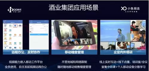 近日,由CIO时代主办、小鱼易连云视频协办的酒业CIO私享会顺利召开,全程采用云视频互动加直播方式在线举办。舍得酒业、郎酒股份、天朝上品酒业等十数家酒业公司信息化负责人集聚一堂,共商后疫情时代行业数字化发展之路。小鱼易连副总裁陈艾涛分享了云视频在酒企制造、营销、培训等多环节的深度应用,他指出:云视频四大能力将助酒业管理升级。