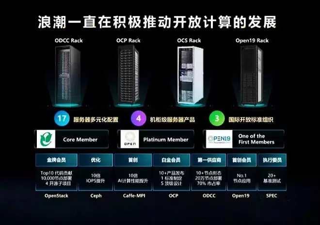 作为开放计算的推行者,浪潮持续定义领先的开放计算产品,2017年,浪潮发布符合OCP标准的OR系列整机柜服务器;2019年,浪潮三款开放计算平台产品通过OCP标准认证,并在OCP官网公布,供其他厂商借鉴。