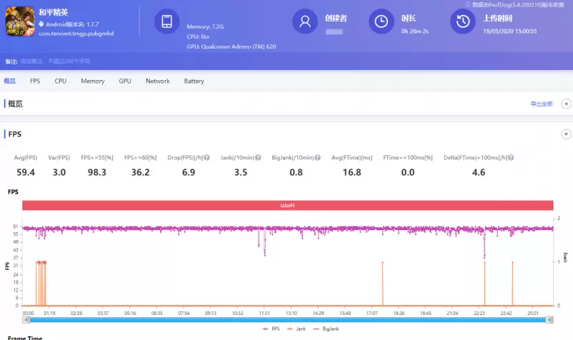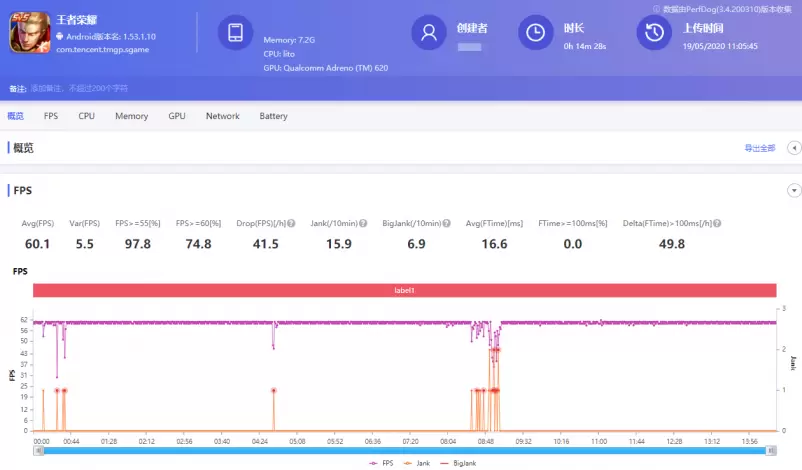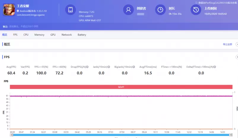 王者荣耀:搭载天玑820的Redmi 10X游戏帧率图