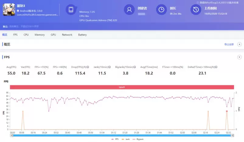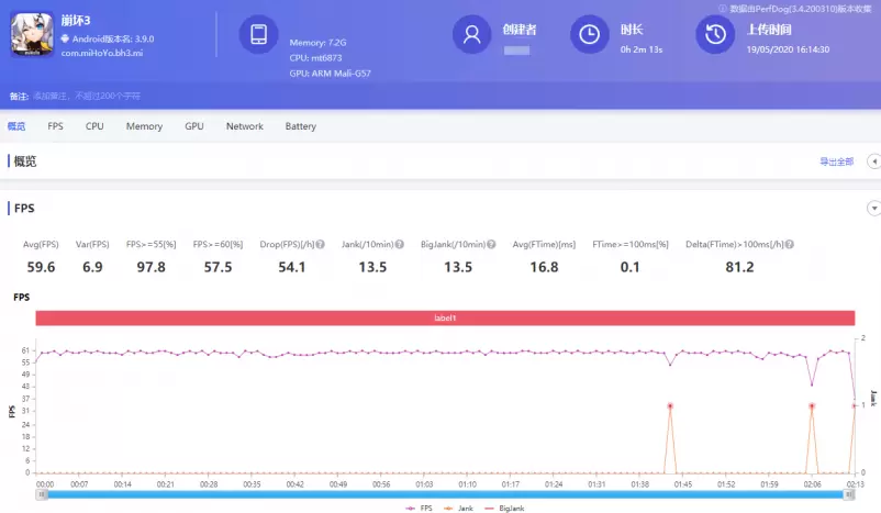 崩坏3:搭载天玑820的Redmi 10X游戏帧率图