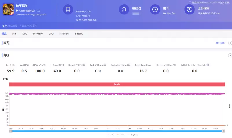 和平精英:搭载天玑820的Redmi 10X游戏帧率图