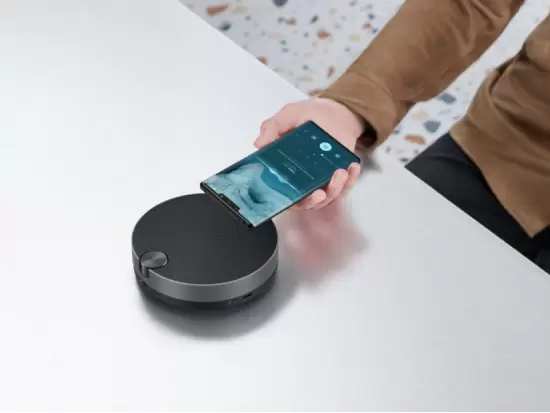 在设计理念层面,华为FreeGO蓝牙音箱秉持极简设计——只需一个小圆旋钮就能解决静音、暂停、接听等常用操作。大圆套小圆,小圆旋钮与整个产品大圆相映成趣,小圆旋钮采用交互非常好的微阻尼设计,旋转过程中顺畅且手感颇佳,而旋钮顶部采用的微光透孔工艺,更是充分体现了华为FreeGO蓝牙音箱简约而不简单的设计初衷。配色方面,曜石黑与皓月银更展示了华为FreeGO蓝牙音箱的极简主义魅力。