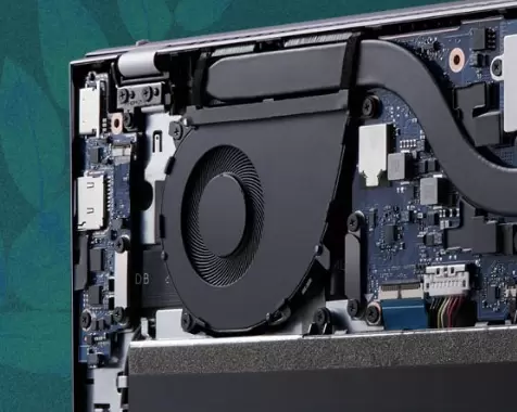 灵耀14升级蝉翼散热系统,71片高密度扇叶组成的风扇,风量更大,能够有效发散机身内热量。配合12mm超粗散热管,散热性能更强更稳定,同时低负载任务时可手动开启静音风扇模式,让用户更专注于工作中。