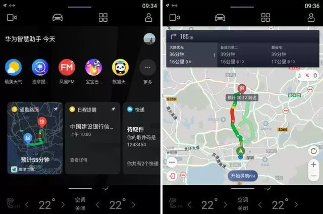 比如,【日程】卡片将自动同步车主手机中的行程安排,关联差旅航班、高铁出行信息,自动进行道路规划并一键导航至目的地;上下班时【通勤路况】贴心为你避开拥堵路段,轻松到达;手机下单买了东西,开车回家时【快递】信息将自动呈现在车内大屏上,提醒你停好车回家前先去取个快递;当你的爱车油量电量不足时,车内大屏将温馨发出提示,并可一键导航至附近的加油/充电站点。