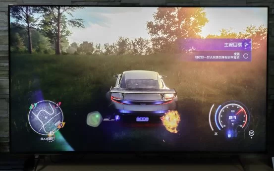 无论是游戏还是电影,往往画面的变化速度都非常快,画面中物体会呈现出高度移动的状态。如果电视的动态画面表现不佳,则很容易出现出现动态画面模糊、撕裂的情况。X9100H的刷新率高达120Hz,配合索尼独有的明锐动态技术,通过X1芯片侦测动态的区域,并向这些区域智能插入黑帧,在提升电视帧数让动态画面更流畅的同时,让画面一直保持在较高的亮度。可以看到,虽然画面通过背景模糊来体现汽车的高速移动状态,但车身上的文字和细节都保持了很清晰的细节,画面也没有因为插入黑帧而变暗,这让X9100H能够轻松应对动态画面。