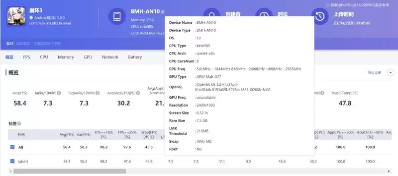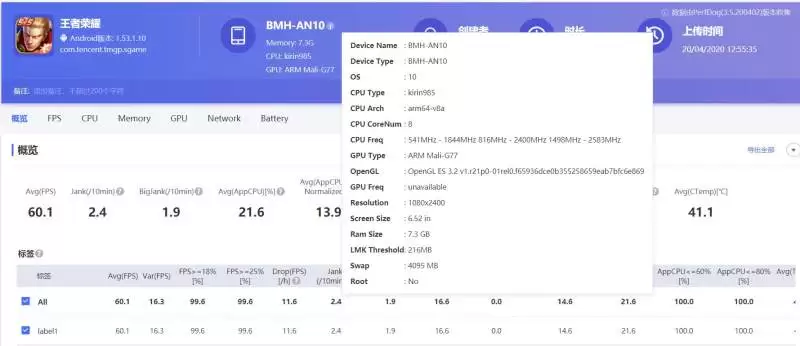 先进的设计方式,为麒麟985带来强大的性能。在安兔兔评测中麒麟985跑出413621的好成绩,其中CPU和GPU分数分别为139694与136626,达到旗舰级处理器的水平。在游戏实测中,搭载麒麟985的荣耀30表现良好,在王者荣耀游戏中稳定60至61帧,游戏全过程也没有掉到59帧一下的情况,在复杂的团战中也并没有对麒麟985造成影响。此外,在崩坏3的实测中,荣耀30帧数为58.4,CPU占用率为30%左右,对于这款极其要求硬件性能的游戏,麒麟985的表现令人惊喜,对于其他各类大型游戏也都绰绰有余,能够带来旗舰般的游戏体验。