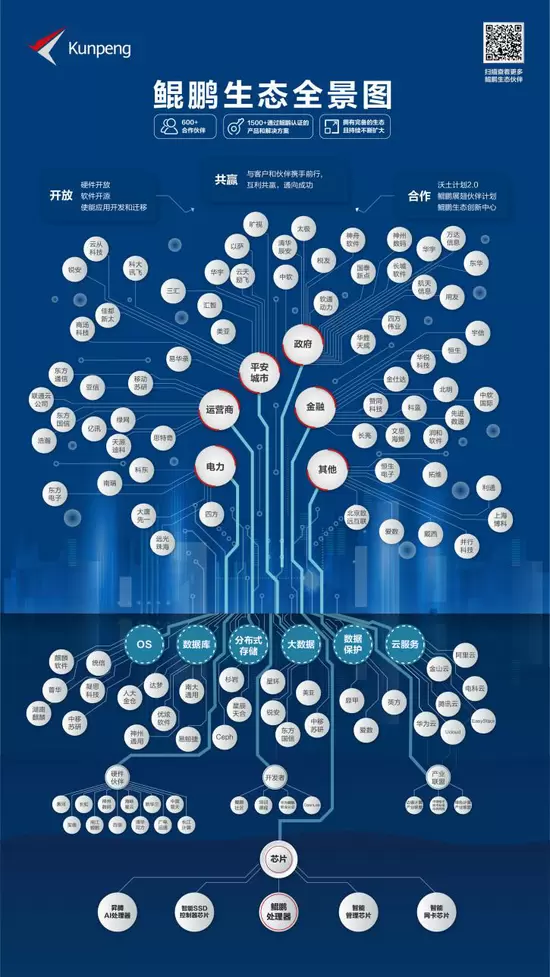 目前,全国已成立16个鲲鹏生态创新中心,与600多家合作伙伴推出了超过1500个通过鲲鹏技术认证的产品与解决方案,在政府、平安城市、金融、运营商、电力和其他领域实现了广泛应用。