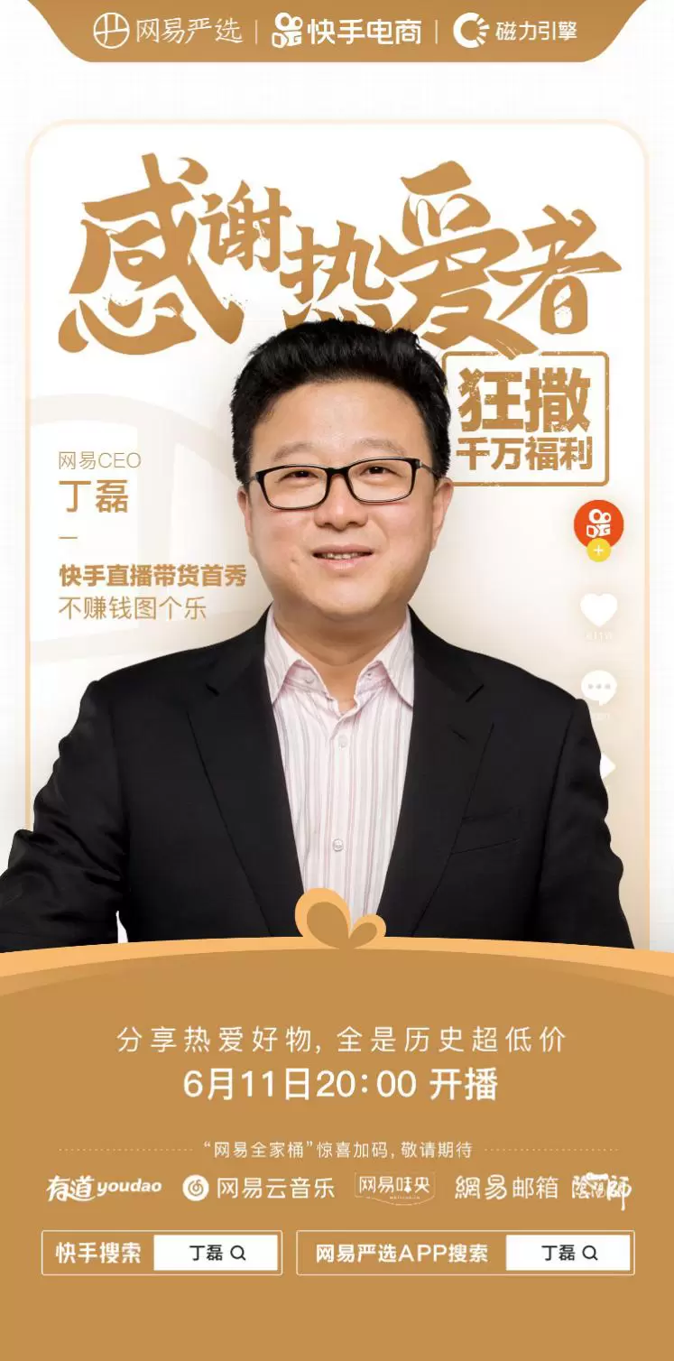丁磊宣布在快手直播带货,网易严选成重头戏