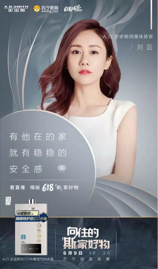 众所周知,刘芸一直以来都给人特别亲近、乐于分享的感觉,自喜提宝宝后更是开启了分享生活好经验、好物品的模式。刘芸选择在《乘风破浪的姐姐》开播之际,以A.O.史密斯明星体验官的身份空降苏宁易购总部,做“向往的斯家好物”专场直播,可谓诚意满满。