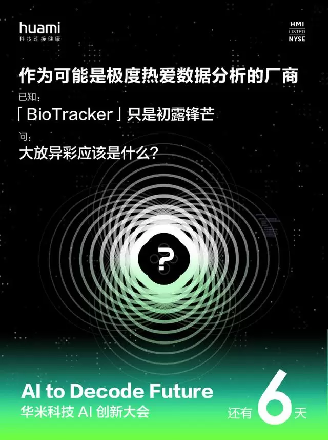 距离华米科技AI创新大会的开展还剩下6天,届时除了可能会有全新的BioTracker™PPG生物追踪光学传感器亮相外,还会有哪些让人惊喜的AI技术?大家不妨关注一下。