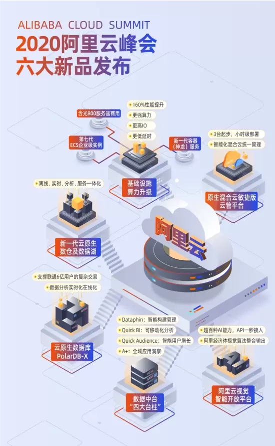 6月9日,阿里云宣布推出第七代ECS、POLARDB-X数据库、视觉智能开放平台等重磅新品,在性能、稳定性和开发效率上继续领跑全球。此外,阿里云还发布了新一代数据中台、混合云管理平台、云原生数据仓库等产品及解决方案,目前这些产品均已在阿里云官网上线。