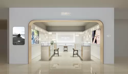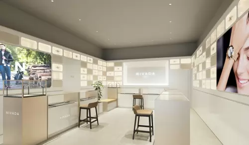 尼维达NIVADA全新店铺形象在保持品牌一贯的优雅、轻奢氛围中,融合东方美学设计灵感,使门店整体风格更加年轻摩登。店铺外立面的香槟金属色,是由三层厚铁板的外框叠加而成,宛如尼维达NIVADA腕表的金属外壳。产品展示柜采用更通透明亮的设计,与店外保持同样的香槟金色,增加室内色调的轻盈感。同时,店内的座椅等家具的风格也随之更换,兼顾设计感与年轻化。将品牌元素与东方元素相融合,增加了店铺空间的层次感和纵深感,将腕表的内在美学价值赋予顾客独特的体验环境中。
